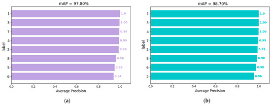 Comparison of mAP values: (a) the mAP value of the YOLOv8x model and (b) the mAP value of the YOLOv8x-CAMDP model.