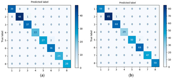 Confusion matrix comparison chart: (a) the confusion matrix for the YOLOv8x model and (b) the confusion matrix for YOLOv8x-CAMDP.