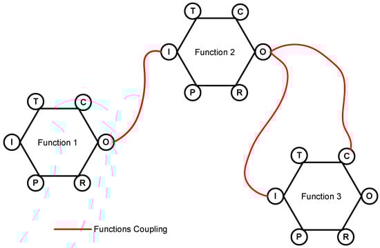 Then, the variability of the functions individuated in the previous step (which can be endogenous (or internal), exogenous (or external), or influenced by upstream functions) is evaluated. The next step consists in determining if and where functional resonance may occur, i.e., how the output of each function is related to the various aspects of other functions. Thus, from the graphical point of view, the hexagons (i.e., the functions) are connected (Figure 2). Such a process, which is called “coupling” [57], aims to bring to light the dependencies among the functions. It is noteworthy to observe that while the link between the output (O) of one function and the input (I) of the following one goes without saying, additional dependencies can occur.