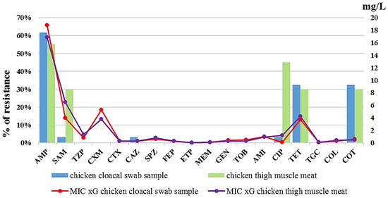 - Kocúreková, T.; Karahutová, L.; Bujňáková, D. Antimicrobial susceptibility and detection of virulence-associated genes in Escherichia coli strains isolated from commercial broilers. Antibiotics 2021, 10, 1303. [Google Scholar] [CrossRef] [PubMed]