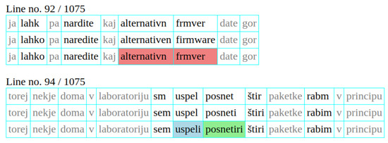 The inflective nature of Slovenian (and other inflected languages) gives more opportunities to the existence of non-standard forms identical to the standard forms of the same word in a different grammatical category. This can be seen in the unwarranted conversion in Figure 1, where the word uspel (eng. to succeed in first person singular) was converted to uspeli (eng. to succeed in first person plural).