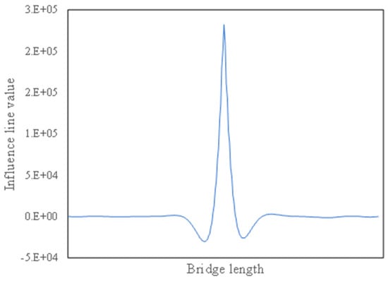 Influence line of bending moment at mid-span of cable-stayed bridge.