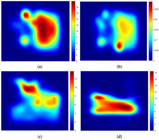 A large amount of pedestrian trajectory data explains the degree of “preference” that pedestrians have for different areas, indicating that the model needs to pay more attention to these areas. This way, we can address the issue that previous work, which only extracts environmental information, cannot establish a connection with pedestrians. In order to obtain the trajectory density values for each spatial location, this paper divides the trajectory data using a Gaussian kernel function based on historical trajectory data, resulting in a trajectory density map for spatial locations in each scene. This trajectory density map illustrates the areas of the congregation for pedestrians within the scene and their certain walking preferences. The Formula (11) for the Gaussian kernel density. Figure 5 shows the spatial probability density feature map of the dataset in this paper.