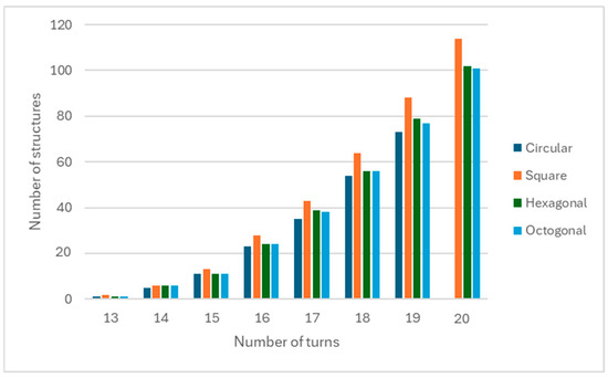 The number of structures of different shapes that meet the design criteria for various values of the outer diameter.