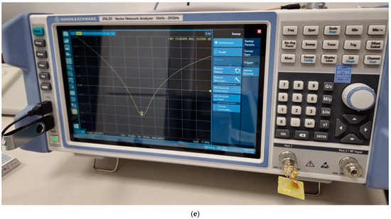 The structures were created with the help of LPKF Plotter (LPKF Laser & Electronics SE, LPKF Laser & Electronics SE, Osteriede 7. D-30827 Garbsen), and they are presented in Figure 21. The capacitance and inductance values obtained experimentally, analytically, and through numerical modeling are also compared in the graphs in Figure 22. The measuring process of the inductance can be seen in Figure 23 for each of the structures analyzed.