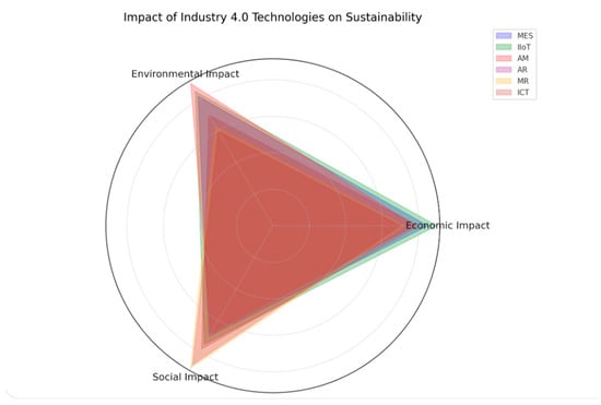 - Waste Reduction: This dimension measures the percentage reduction in material waste following the adoption of each technology (e.g., a 25% reduction for MES indicates that material waste was reduced by 25%).