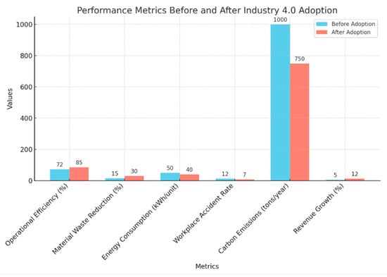 - Environmental benefits: A 25–35% reduction in waste and a 15–20% decrease in energy consumption were observed, particularly in firms utilizing AM and IIoT, contributing to reduced carbon emissions.
