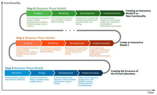 The phase model was chosen as the most suitable for the implementation of the virtual laboratory. This model is characterized by two varieties: the stepwise model (step-by-step, incremental) and the iterative model.