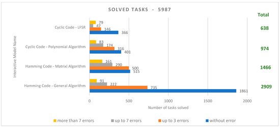Distribution of the solved tasks with the interactive models from the virtual laboratory.