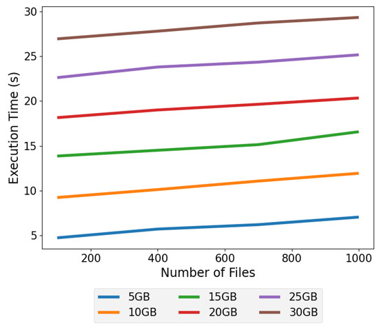 Figure 4 shows the execution time of the full hash algorithm. Quite expectedly, full hashing directly correlates to the size hashed, regardless of the number of files.