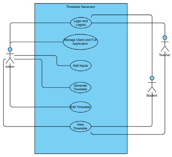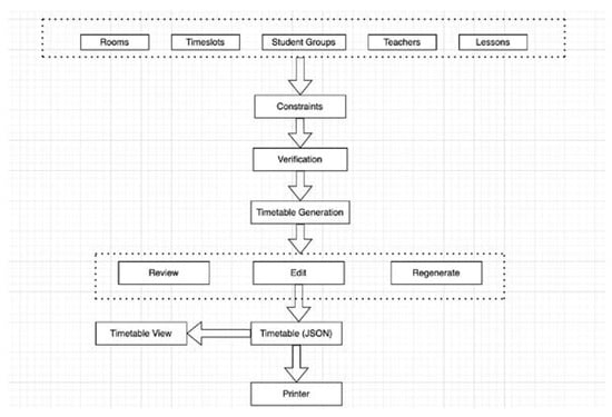 A web-based platform is proposed for the development of an Automatic Timetable Generation system for a faculty. The frontend of the system is constructed using the Angular framework, while the backend is developed using Java with Spring Boot. The aforementioned architectural approach guarantees a design that is both scalable and modular, effectively segregating the presentation layer from the business logic and data processing layers, as shown in Figure 1. The proposed system is designed to adopt a client–server architecture, wherein the Angular-based frontend can establish communication with the Java-based backend via APIs.