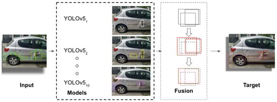 To address the task of vehicle damage assessment, we propose the implementation of a system based on ensemble learning and YOLOv5, as visualized in Figure 1, allowing us to keep the number of false positives to a minimum and guaranteeing low inference times.