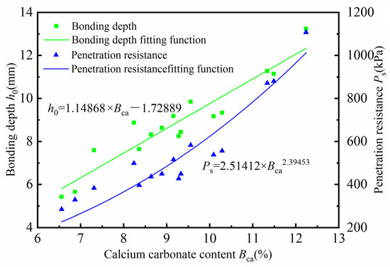 The relationship between penetration resistance and cementation depth and calcium carbonate.