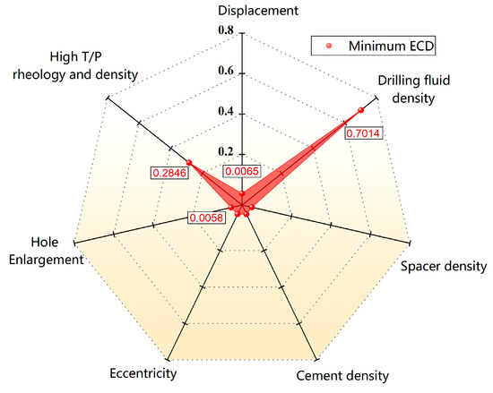 Weight analysis of influencing factors for the minimum ECD in the annulus.