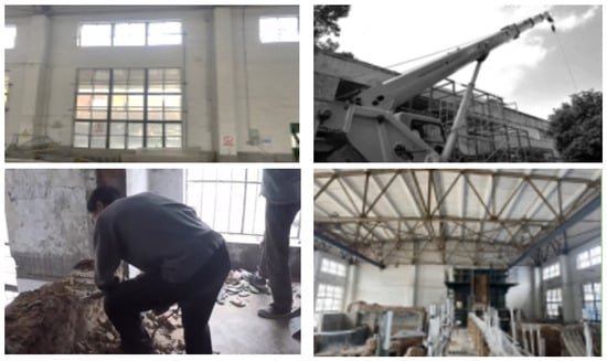 This study considered the QL stadium renovation as an example and used the above safety assessment model to conduct an empirical analysis. The construction area of the renovation project was 1571 square meters, the main body was a frame structure, and the roof was a steel grid. For the transformation of the steel structure grid roof, the main work is to improve the bearing capacity, node reinforcement, and anti-corrosion treatment. At the same time, for the wall and space layout, the demolition and reinforcement of some infilled walls, sound insulation treatment, fire prevention level improvement, and other aspects are mainly carried out. The specific renovation site is shown in Figure 4. From the perspective of reconstruction and reuse, this study evaluated the safety of the reconstruction process of the project to determine the safety level of venue reconstruction. Then, it provided a basis for strengthening the construction safety management of the project.