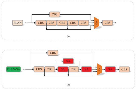 Specifically, the ELAN-SA module enhances feature extraction through the following approaches: