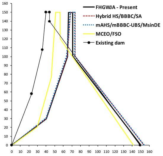 The proposed FHGWJA algorithm was successfully tested in seven “real world” engineering problems. The selected test cases, including up to 29 optimization variables and 1200 nonlinear constraints, regarded, in particular, the following: (i–ii) 2D path planning (minimization of trajectory lengths, respectively, with 7 or 10 obstacles); (iii) shape optimization of a concrete gravity dam with additional earthquake load (volume minimization); (iv–v) calibration of nonlinear hydrologic models (the Muskingum problem solved with 3 or 25 unknown model parameters to be identified); (vi) optimal crashworthiness design of a vehicle subject to side impact; (vii) weight minimization of a planar 200-bar truss structure subject to three independent loading conditions. The present algorithm was compared with the best performing algorithms indicated in the literature for each test problem and advanced variants of state-of-the-art MHAs.