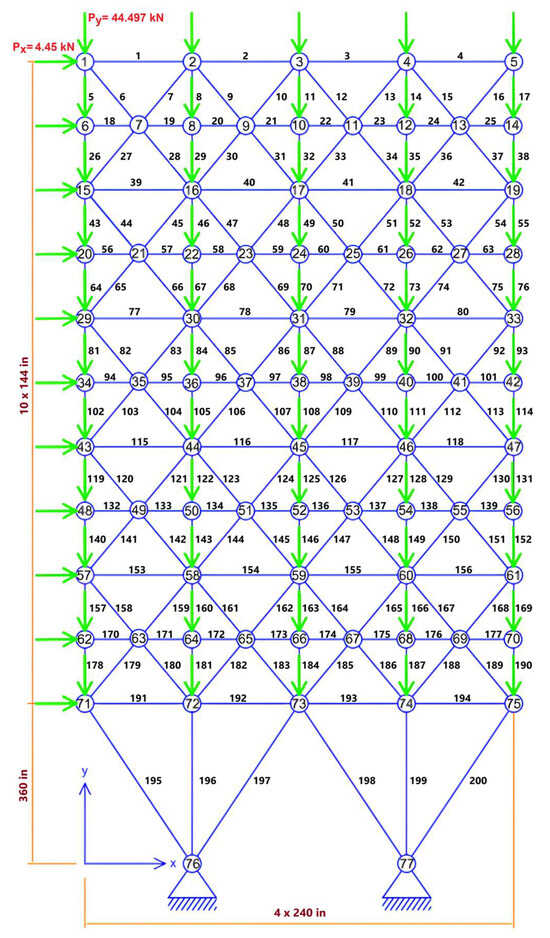 - Degertekin, S.O.; Minooei, S.M.; Santoro, L.; Trentadue, B.; Lamberti, L. Large-scale truss-sizing optimization with enhanced hybrid HS algorithm. Appl. Sci. 2021, 11, 3270. [Google Scholar] [CrossRef]