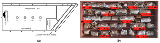Samples were taken from depths of 1~14 m at the working surface (Figure 7a). To ensure the integrity and accuracy of the test samples, all soil samples were sealed and preserved to prevent oxidation or weathering due to water absorption (Figure 7b).