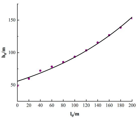 Figure 15 illustrates the approximate exponential relationship between the working face propulsion distance and the corresponding force chain arch height, as follows: