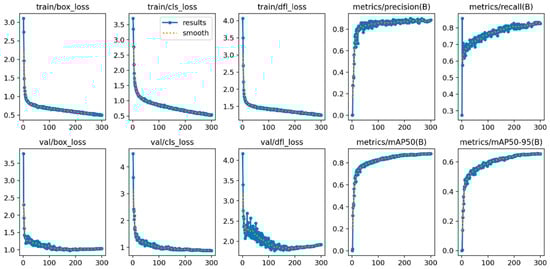Figure 17 illustrates the loss functions, Precision, Recall, mAP@50, and mAP@50:90 during the training and validation process. As the number of epochs increases, the various metrics continuously improve, indicating that the model is gradually converging, and its performance is enhancing.