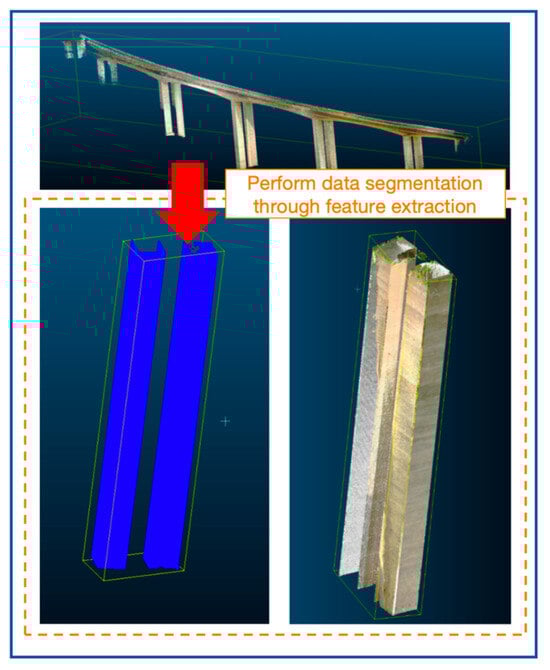 Given the variability in the scale of bridge construction projects, the size of bridge point cloud data can differ significantly. Therefore, before initiating crack detection, it may be necessary to determine whether to automatically segment the bridge point cloud data as needed. To address this issue, the current study employs relevant functions in computer languages (such as the “num_points” and “bins_per_axis” functions) to output sliced data volumes that are specifically partitioned based on the size of different bridge projects and the computational capacity of the working environment, enabling automatic slicing of the point cloud data.