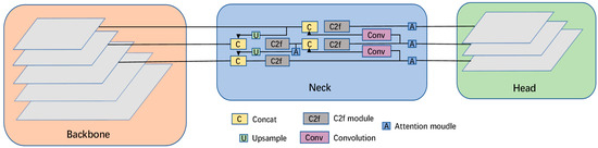 Within the realm of detection algorithms based on deep learning, two primary categories exist: two-stage and one-stage algorithms. Two-stage algorithms [7], exemplified by R-CNN [8], Fast R-CNN [9], and Faster R-CNN [10], employ candidate regions for target detection. In contrast, one-stage algorithms [11], represented by the YOLO series [12,13,14,15,16], achieve simultaneous localization and classification, offering a more streamlined approach.