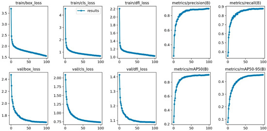 where TP represents the number of correctly detected objects, FP represents the number of incorrectly detected objects, FN represents the number of missed objects, P represents the accuracy rate, R represents the recall rate, AP value refers to the area under the P and R curves, AP represents the sum of the AP values of all the classes, and N (class) represents the total number of classes. mAP50 denotes the intersection and union ratio (Intersection over Union (IOU) of 0.50 to calculate the mean value of AP for each category. And mAP50:95 refers to the mean AP value when the IOU is from 0.50 to 0.95 with an interval of 0.05. Both P and R were calculated with an IOU threshold of 0.50.