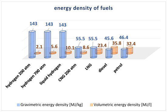 Comparison of hydrogen with traditional fuels in terms of energy density [4,5,6,7].