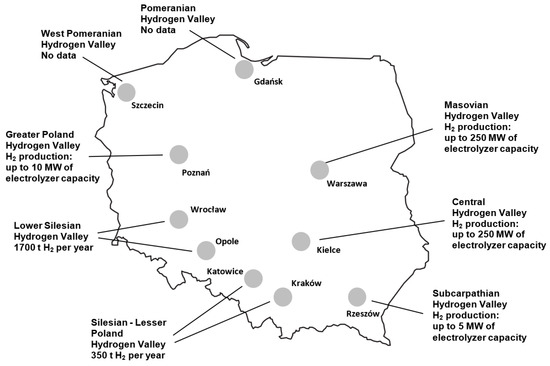 Location of hydrogen valleys in Poland.