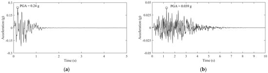 - Vanmarcke, E.H.; Gasparini, D.A. Simulated earthquake ground motions. In Proceedings of the 4th International Conference on Structural Mechanics in Reactor Technology, San Francisco, CA, USA, 15–19 August 1977. [Google Scholar]