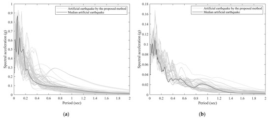 - Use the MCS to generate artificial earthquakes with Equation (22) and transform them into the time domain as described in Section 2.2.2.