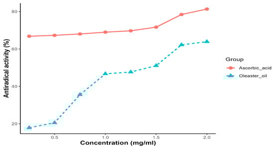 DPPH radical scavenging activity as a function of the extract of oleaster oil.