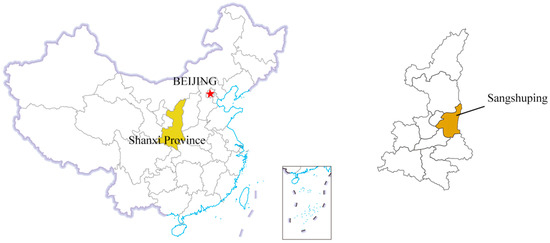 The sandstone specimens were selected as the research object, and were collected from the transportation roadway of a coal mine at a buried depth of 730~800 m in Shanxi Province, China (as shown in Figure 1). The joints and cracks in the surrounding rock are only slightly developed. Six specimens (φ50 × 100 mm) were drilled and polished from a large rock sample in the laboratory with the ISRM’s suggested method [34].The detrital components are primarily quartz, and the cementing material components are mainly carbonates. It belongs to relatively young sandstone after the Mesozoic era. This sandstone is a medium-strength rock. Furthermore, to minimize the influence of different LRs on the experimental results, a control experiment was conducted to test the mechanical properties of sandstone specimens at a loading rate of 0.5 MPa·s−1 using the MTS815 electro-hydraulic servo-controlled rock mechanics testing system at the China University of Mining and Technology. The average value of UCS measured was 69.2 MPa.