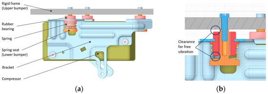 (a) Simplified scheme of suspension system of compressor; (b) Vibration isolator cross-section.