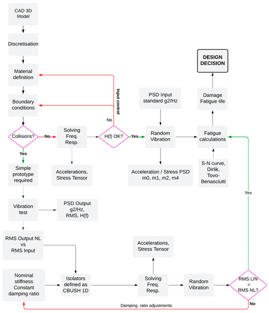 This study demonstrated the effectiveness of finite element modelling (FEM) and power spectral density (PSD) simplifications in predicting fatigue life for two different mechanical systems under random vibration conditions. Based on the results and analysis, the following key conclusions can be drawn: