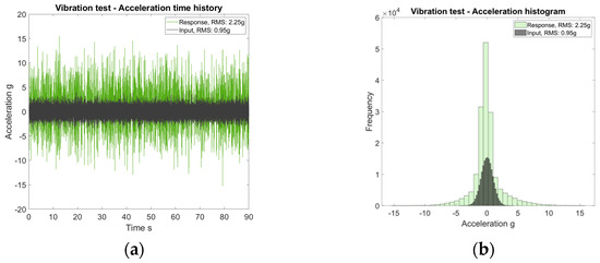 Acceleration results in accordance with the input shown in Table 1: (a) Time history; (b) Histograms.