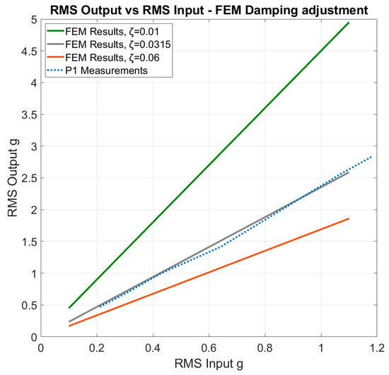 The RMS response of the compressor suspension system—adjusting the critical damping ratio for the FEM model.