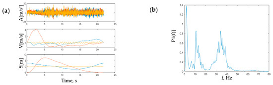 To obtain the dynamic response in the frequency domain needed for further FEM simulation, the acceleration time history data for the vibrating mass (Figure 5a) was subjected to analysis through the Welch method [17,18,19], resulting in the PSD function presented in Figure 6.