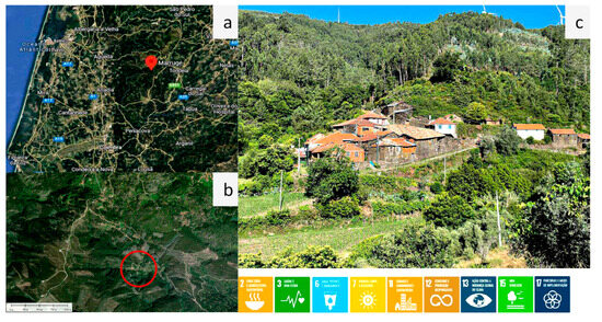 In this study, a small community in the northern part of Portugal, Marruge, was selected as the site for the setup implementation of a small hybrid energy solution (Figure 6). The model’s simulation algorithm is set to an hourly timestep. Two approaches were delineated for this study: stand-alone and grid-connected.