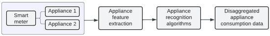 However, in recent years, the definition of ILM has changed. Based on recent articles, ILM implies that collected energy data do not require data disaggregation to distinguish various appliances [,,] as in the case of NILM. NILM relies on the concept of a unique energy utilization pattern for each load and its goal is to filter out the energy consumption of individual equipment from the total power usage [].