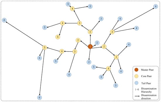 The architecture of blockchain can be broadly summarized as consisting of the data layer, network layer, consensus layer, smart contract layer, and application layer [3]. Among these, the network layer serves as the source of decentralization in blockchain. It primarily defines the networking process between peers in the blockchain and controls the propagation of data in the network through broadcasting protocols. Each user peer’s block data generated through the consensus service is redundantly stored in ledger form on different peers through multiple peer-to-peer (P2P) transactions, effectively addressing single-point-of-failure issues and ensuring data security. Therefore, optimizing the data propagation mechanism [4] at the network layer is a highly valuable and necessary measure for improving the overall communication performance of blockchain. Additionally, as the practical applications mature, the demand for the number of peers in blockchain systems is increasing. The impact of the broadcasting protocol on communication efficiency becomes more significant [5]. However, compared to research on optimizing consensus algorithms, data storage structures, and other aspects, research on the network layer has received relatively little attention.