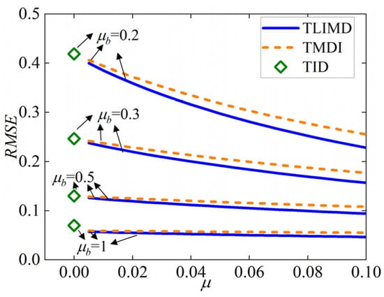 Figure 9 shows the RMSE value versus the mass ratio μ. It can be observed that the TLIMD exhibits the minimal value for all the selected cases, especially under the large mass ratio condition (such as μ = 0.1). Furthermore, the increase in mass ratio μ and the inertance ratio μb can diminish the RMSE of all these dampers, and thus somehow enhance the robustness of the damper performance.