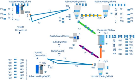 - Fabri, M.; Ramalhinho, H.; Oliver, M.; Muñoz, J.C. Internal logistics flow simulation: A case study in automotive industry. J. Simul. 2020, 16, 204–216. [Google Scholar] [CrossRef]