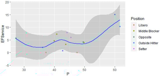 The reception coefficient for the setter (Table 3) reaches the value of 0.00 due to the lack of a situational reception by one of the players. On the other hand, the lack of numerical values for the libero player in the case of the variables GPFpts, GPFService, GPFAttack, and EFService is due to the player’s characteristic style of playing. The lack of SD for EFSets proves a small number of situational rallies performed by players appearing in this position.