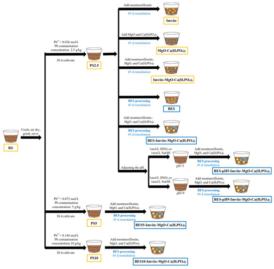 Flow chart of different soil remediation methods (The yellow box indicated the groups without BES, while the blue box represented the treatment groups with the composite remediation agent combined with BES).