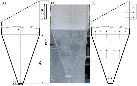 The geometry of the vertical diffuser under study and its photograph are shown in Figure 2a,b.