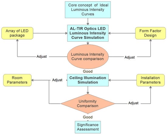 The design flow chart of the proposed AL–TIR LED luminaires.