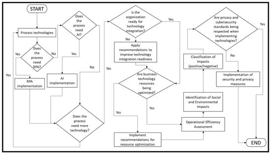 This model is intended to serve as a practical guide for organizations seeking to implement AI and RPA technologies. It leads companies through a process of readiness assessment, technological integration, and classification of the resulting impacts. The proposal aims to balance the pursuit of efficiency with social and environmental responsibility, reflecting the increasing demand for sustainable business practices in the contemporary digital landscape.