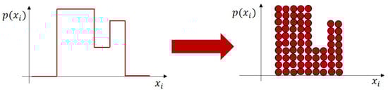 Thus, the original continuous probability distribution is represented by a discrete sample, as seen in Figure 3.